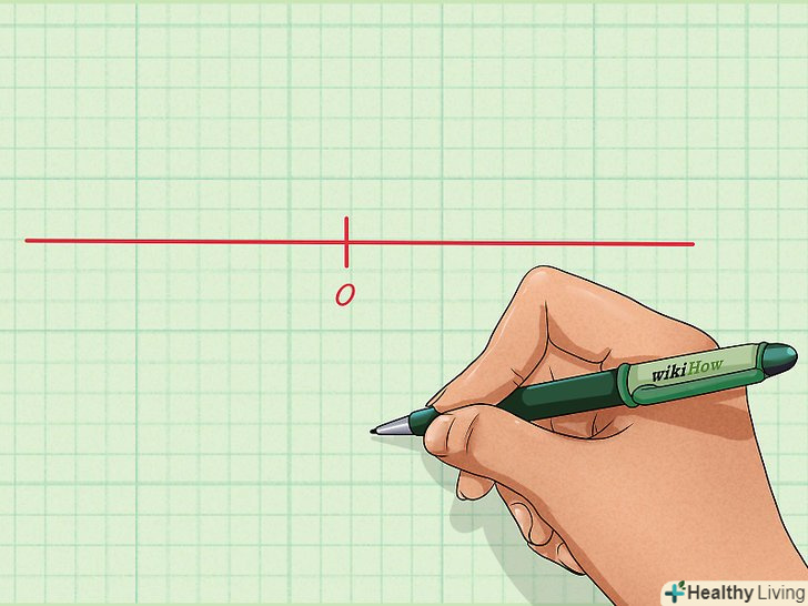 Намалюйте числову пряму.проведіть пряму лінію і поставте мітку посередині неї. Під міткою напишіть 0 - це буде початок відліку.- Початок відліку-це точка, з якої відраховують інші точки (числа).