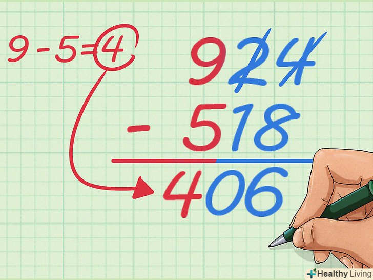 Перейдіть до наступної пари цифр (ліворуч). У нашому прикладі це 9 і 5: 9 – 5 = 4. Остаточна відповідь: 406.