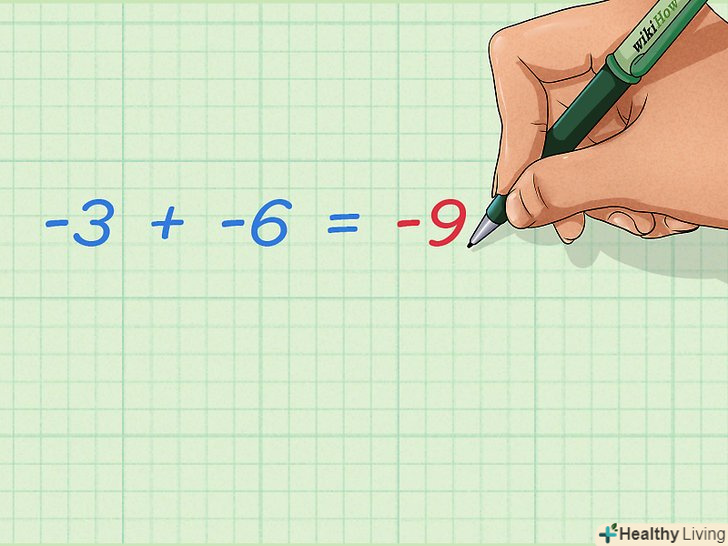 Додавання двох негативних чисел. в цьому випадку ви отримаєте менше негативне число, так як результат буде знаходитися далі від 0 (в порівнянні зі складаними негативними числами).- -3 + (-6) = -9