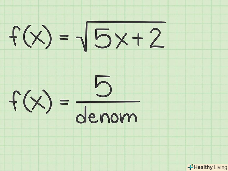 Запишіть похідну підкореного виразу в чисельнику дробу.похідна кореня являє собою дріб, в чисельнику якої стоїть похідна підкореного виразу. Для наведених вище функцій отримуємо наступні вирази:[11]- Якщо
