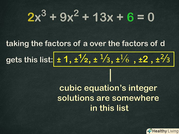 .у підсумку вийде безліч дробів і кілька цілих чисел; корінням кубічного рівняння буде одне з цілих чисел або негативне значення одного з цілих чисел.[9]