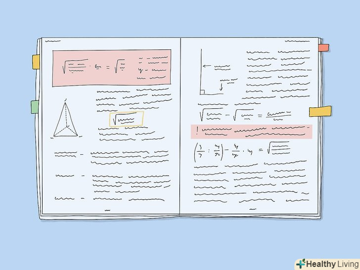 Читайте відповідні розділи підручника, щоб як слід засвоїти матеріал.хоча вам, можливо, не дуже подобається читати підручники з математики, це прекрасний спосіб переконатися в тому, що ви зрозуміли все те, що вчитель пояснював у класі. Уважно читайте задані вчителем розділи, а потім задавайте йому питання, якщо не зрозуміли що-небудь.[4]- При читанні відзначайте або підкреслюйте важливі місця, щоб потім вам легше було знайти їх.