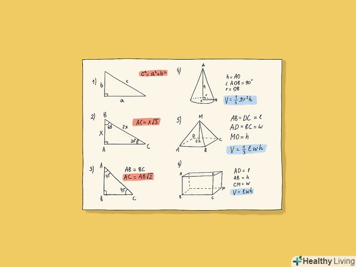 - При виконанні домашньої роботи записуйте потрібну формулу до кожного завдання. Так вам легше буде запам'ятати формули, які знадобляться на іспиті.[2]