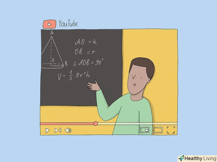 Пошукайте на YouTube навчальні відео, в яких коротко пояснюються складні поняття.якщо ви відчуваєте, що все ще не до кінця розумієте який-небудь матеріал, пошукайте в інтернеті відео з його поясненням. Можливо, так вам легше буде зрозуміти його, ніж за конспектом або підручником.[12]- Наприклад, якщо ви відчуваєте складнощі зі складанням і відніманням дробів, знайдіть відео, де це питання пояснюється в зрозумілій і захоплюючій формі.