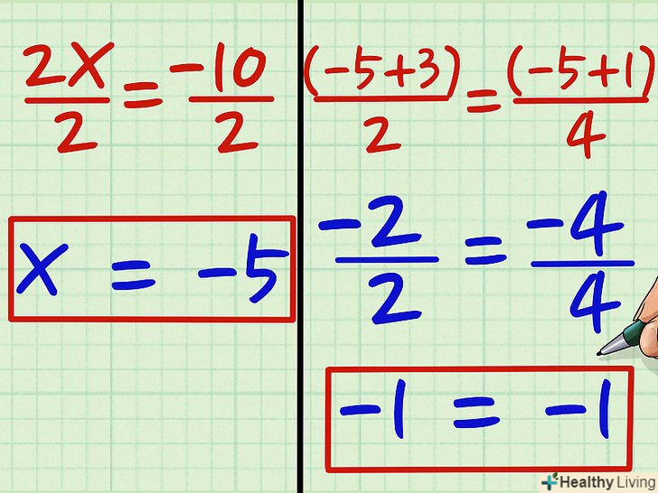 - Перевірте результат, підставивши його в початкове рівняння. Якщо рівняння виходить правильним, тобто якщо обидві сторони рівні, то ви все зробили правильно.