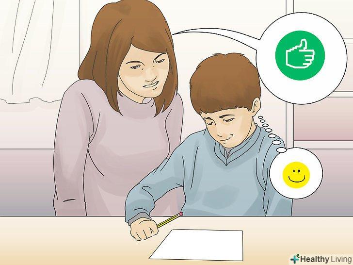 Переконуйте дитину в тому, що він розумний і здатний.позитивна мотивація допоможе дитині подолати страх. Не сваріть дитину, якщо він зробить що-небудь не так, а поговоріть з ним про виниклі труднощі і зробіть акцент на тому, що дитина зробила вірно. Вкажіть на те, якими навичками дитина опанувала, і не турбуйтеся через те, над чим ще потрібно працювати.[11]- Знайдіть репетитора, щоб дитина могла освоїти весь матеріал індивідуально в спокійній обстановці.