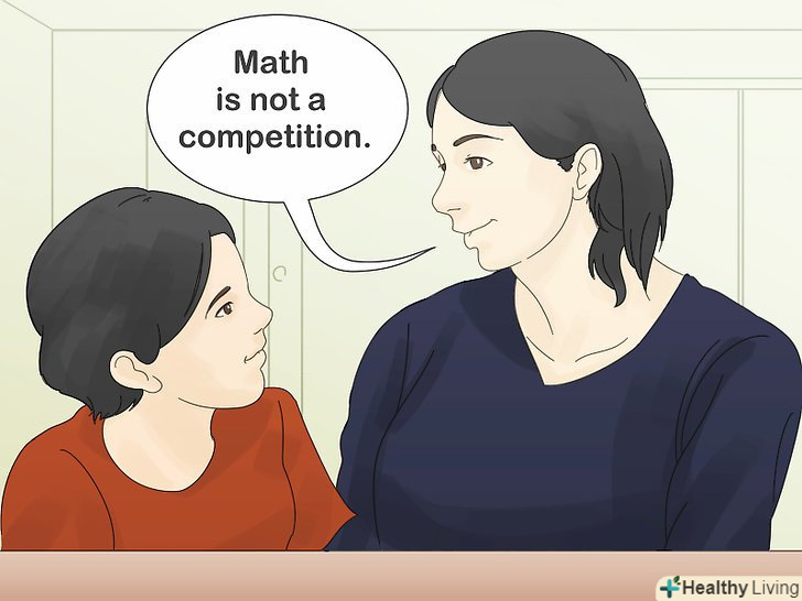Пояснюйте дитині, що йому не варто порівнювати свої здібності зі здібностями однокласників.можливо, дитина неодноразово скаржився вам на те, що йому математика дається складніше, ніж Однокласникам. Не дозволяйте йому так думати. Поясніть, що ваш син або дочка просто освоює матеріал в іншому темпі. Математика-це не змагання.[19]- Не кажіть нічого такого, що змусить дитину думати, що ви порівнюєте його з однокласниками або братами або сестрами.