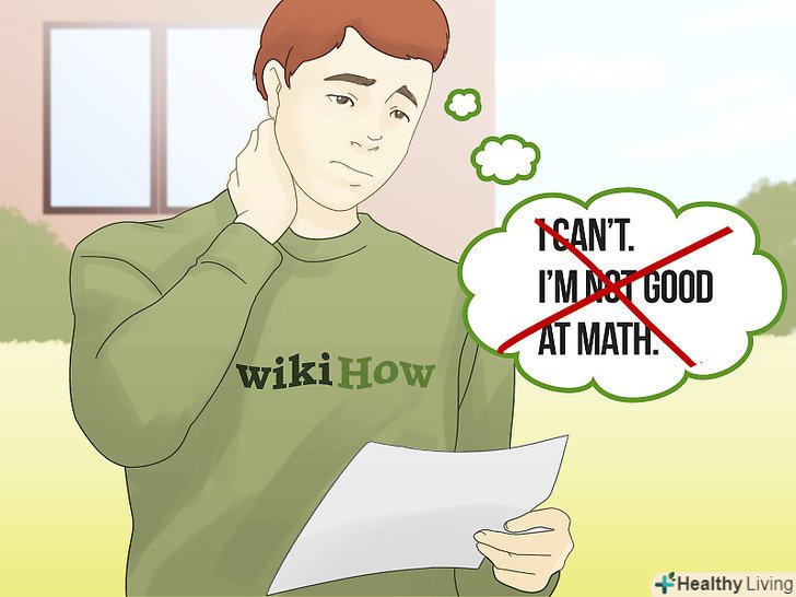 Боріться з перфекціонізмом.нерідко міфи про здібності до математики переплітаються з особистим переконанням в тому, що людина не може зрозуміти математику. Люди з побоюванням математики вважають, що вони не можуть дати відповідь досить швидко або що якщо їм вдалося дати відповідь, це означає, що завдання було занадто легким. Насправді, хоч контрольна робота і обмежена в часі, здібності до математики ніяк не пов'язані з тим, як швидко ви можете дати відповідь.- Якщо завдання здалася вам занадто легкою, швидше за все, ви справляєтеся з математикою краще, ніж вам здається.