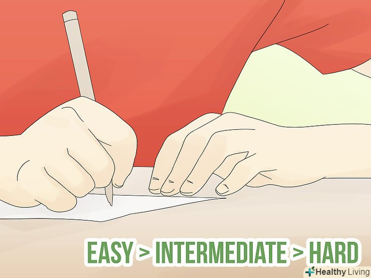 Спочатку вирішуйте найпростіші завдання.як правило, в домашніх завданнях спочатку йдуть прості завдання, і їх складність поступово зростає. Спочатку розберіться з простими завданнями, а потім переходите до складних.[6] не поспішайте. Пропускайте завдання, якщо ви застрягли. Ви завжди зможете повернутися до них пізніше.- Ця тактика працює і при виконанні контрольних і перевірочних робіт. Але не забувайте повертатися до питань, на які ви не відповіли!