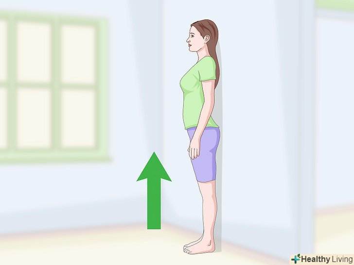 Встаньте спиною до стіни на підлогу, не покритий килимом.ноги повинні бути зрушені разом і стояти рівно на підлозі. П'яти повинні бути притиснуті до стіни. Найпростіше попросити кого-небудь виміряти ваш зріст, але ви можете зробити це і самі.[2]- Не вставайте при вимірюванні на килим - він може трохи продавитися, коли ви встанете на нього, що вплине на результат вимірювання.