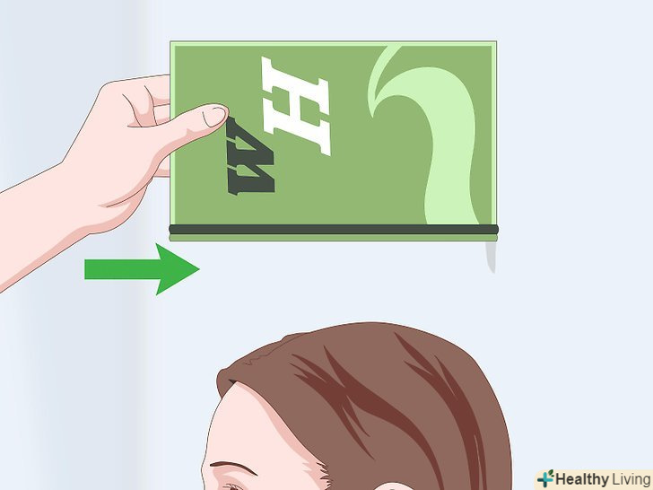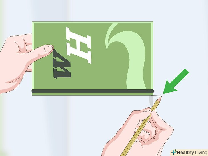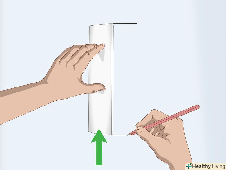 Позначте олівцем місце, де нижній край предмета, який ви використовуєте для вимірювання, торкається стіни.якщо у вас є помічник, він повинен зробити це, поки ви стоїте, притулившись до стіни. Якщо ви один, утримуйте на місці предмет, який ви використовуєте для вимірювання, поки ви повертаєтеся і робите позначку.[5]- Використовуйте олівець, а не ручку, — так ви зможете стерти позначку зі стіни, коли закінчите.