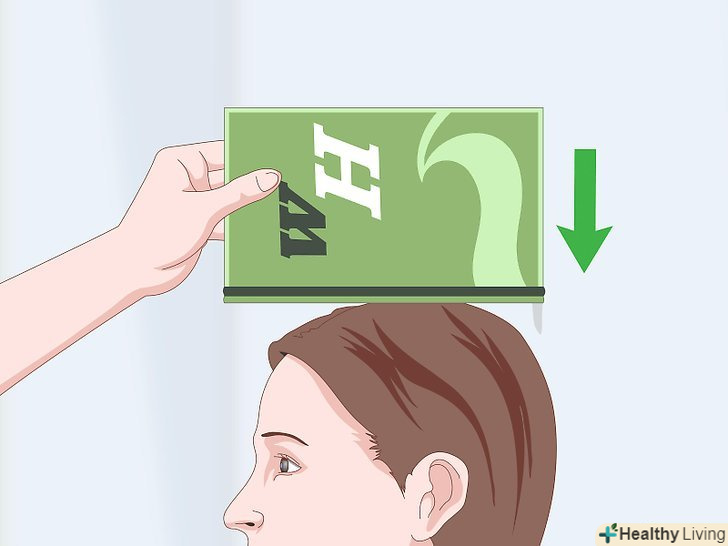 Зсуньте предмет вниз уздовж стіни, поки він не торкнеться вашої голови.незалежно від того, який предмет ви використовуєте для вимірювання, він повинен твердо торкатися вашої голови. Предмет повинен знаходитися під прямим кутом до стіни, поки ваш помічник рухає його вниз.[4]