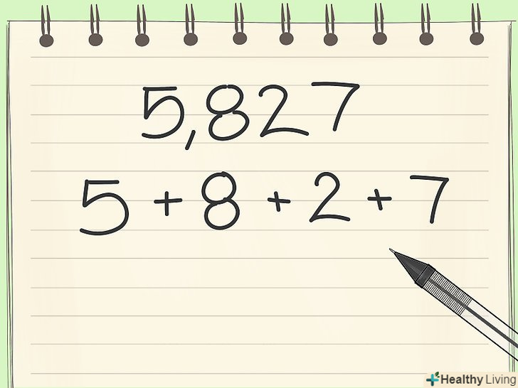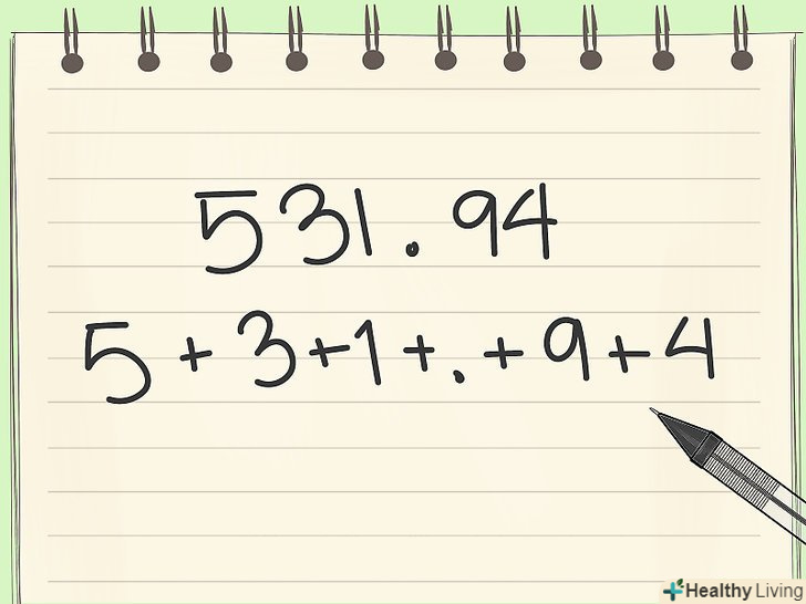Перепишіть число у вигляді суми його цифр; десяткову кому також включите в цю суму.- Зверніть увагу, що десяткова кома в результаті буде видалена, але зараз її потрібно записувати, щоб запобігти плутанині.