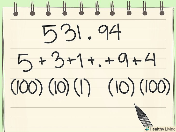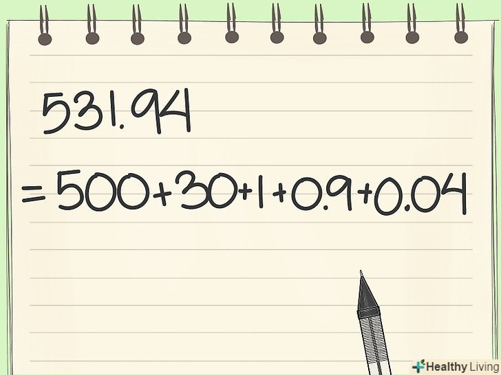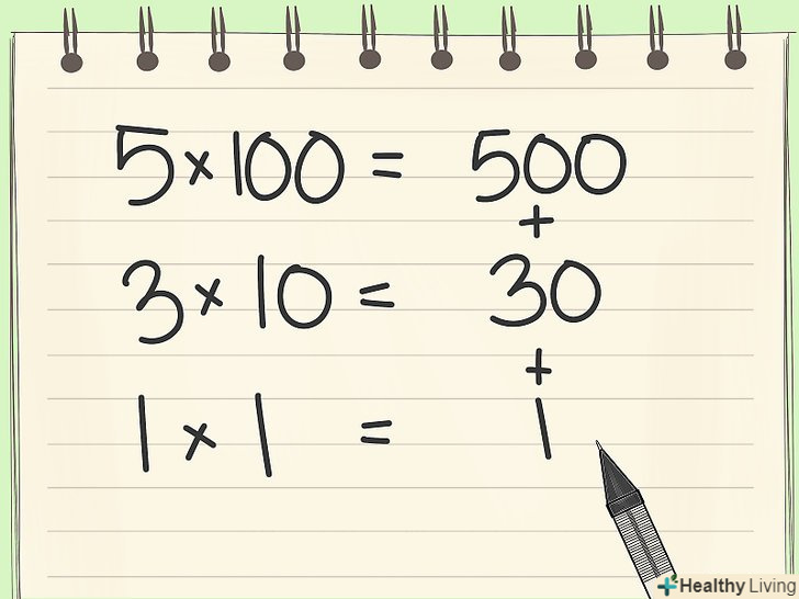 Помножте кожну цифру зліва від десяткової коми на значення відповідної їй позиції.- приклад: [5 * 100] + [3 * 10] + [1 * 1] = 500 + 30 + 1