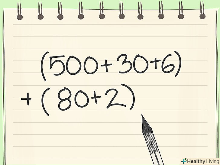 Визначте одиниці, десятки, сотні і так далі.перепишіть завдання так, щоб числа однакової значності стояли поруч (починаючи з числа більшої значності).- приклад: 500 + 30 + 6 + 80 + 2