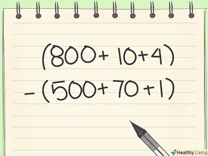 - Перепишіть завдання так: [800 + 10 + 4] - [500 + 70 + 1]