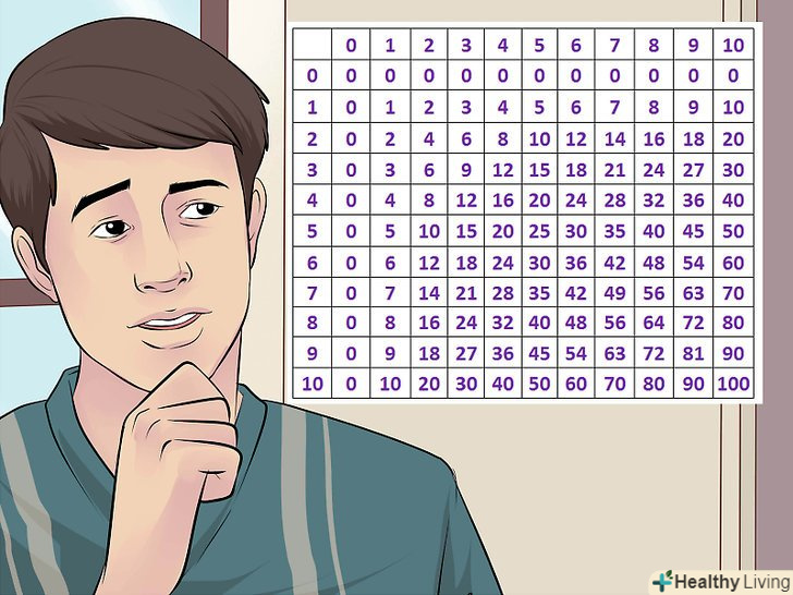 - Якщо у вас виникли труднощі з розумінням процесу множення, подумайте про нього як про процес додавання. Наприклад, 5х10 є десять разів по п'ять. Іншими словами, 5 × 10 = 5 + 5 + 5 + 5 + 5 + 5 + 5 + 5 + 5 + 5.
