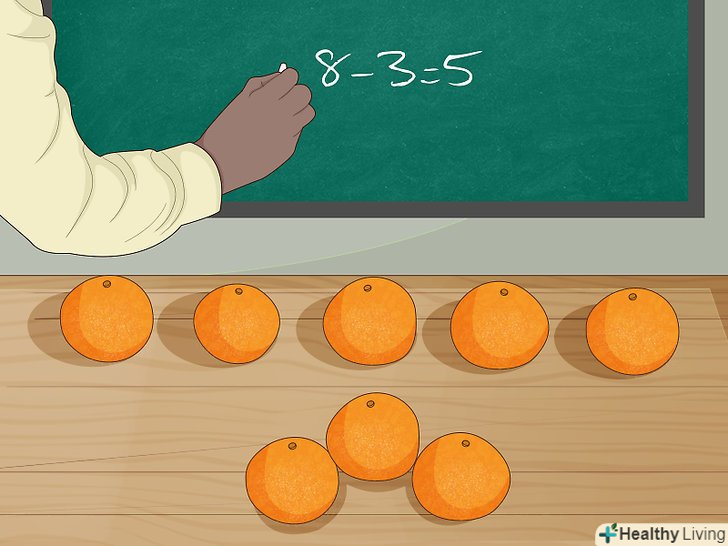Виключіть з процесу навчання підручні матеріали.- Як тільки учень освоїть віднімання з підручними матеріалами, заберіть предмети і попросіть учня вирішувати завдання без них.