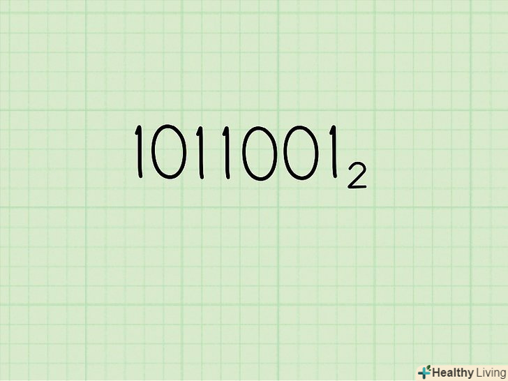 Запишіть двійкове число.даний метод не використовує ступеня. Тому він простіше для перетворення великих чисел в голові-вам потрібно тільки весь час пам'ятати підсумок. Перше, що Вам необхідно зробити – це записати двійкове число, яке ви будете перетворювати методом подвоєння. Припустимо, ви працюєте з числом 10110012. Запишіть його.
