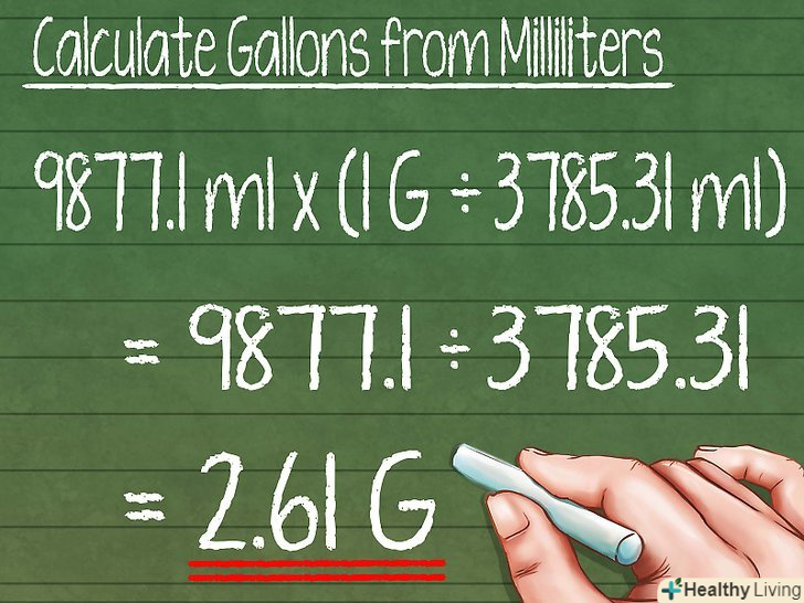 - приклад. обсяг балона становить 9877,1 мілілітра. Знайдіть його обсяг в галонах.