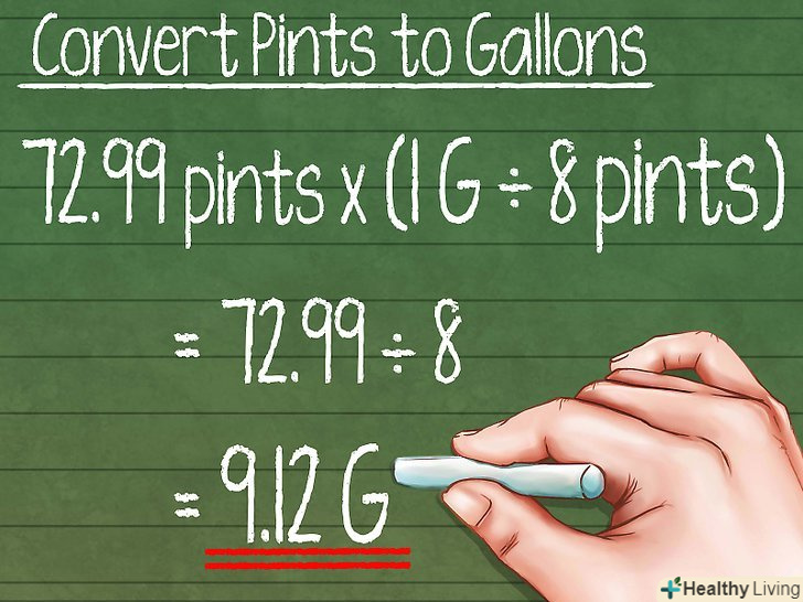 - приклад. обсяг балона становить 72,99 пінти. Знайдіть його обсяг в галонах.