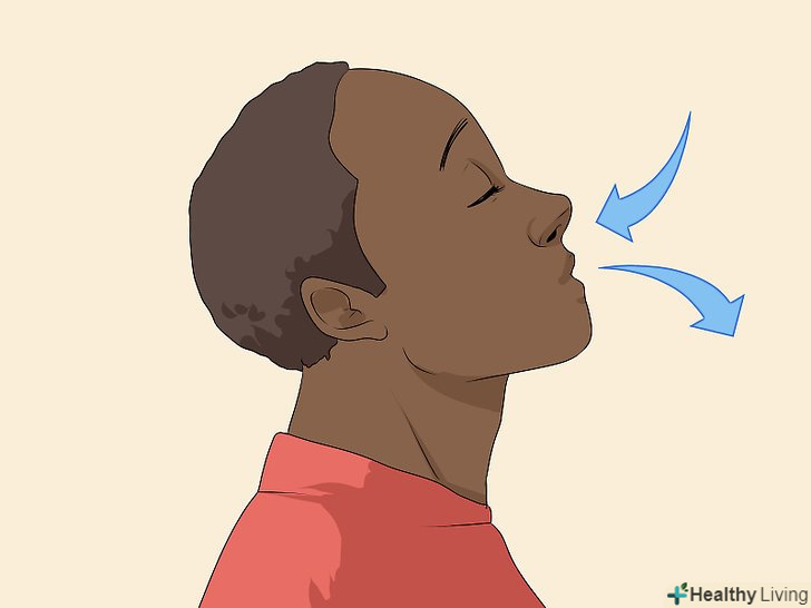 Дихайте глибоко.не хапайте ротом повітря, навіть коли намагаєтеся утримати довгу ноту. Дихайте швидко, але рівномірно. Вдихайте через ніс і видихайте через рот, задійте живіт (діафрагму), розслабте плечі.[2]- Уявіть, що навколо живота у вас гумове кільце. Коли ви вдихаєте, намагайтеся піднімати живіт, як ніби протидіючи кільцю.