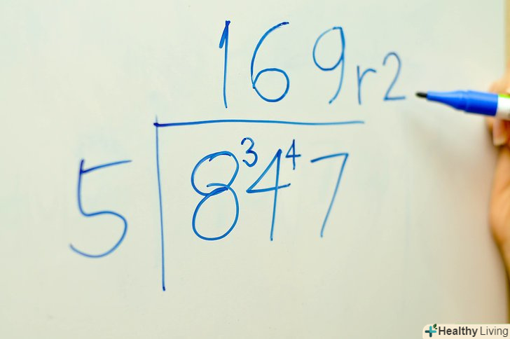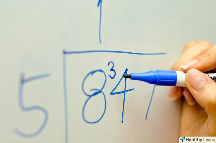 Розділіть число, утворене залишком і другою цифрою в діленому, на дільник. залишок 3, а друга цифра діленого є 4, так що це число 34.- Тепер розділіть 34 на 5.
