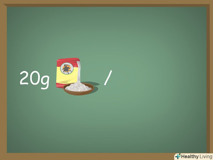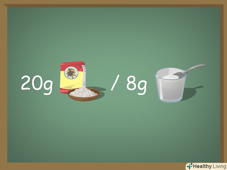 Запишіть значення другої даної величини праворуч від символу співвідношення.не забувайте про величини, з якими ви працюєте.- Приклад: 20 г муки/8 г цукру.
