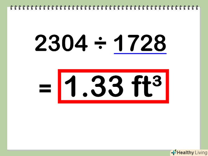 Якщо ви виробляли початкові вимірювання в дюймах, поділіть результат на 1728.так ви отримаєте обсяг в кубічних футах. Якщо початкові вимірювання проводилися в метрах, то ніяких додаткових дій здійснювати не потрібно. Ваш результат буде в кубічних метрах.