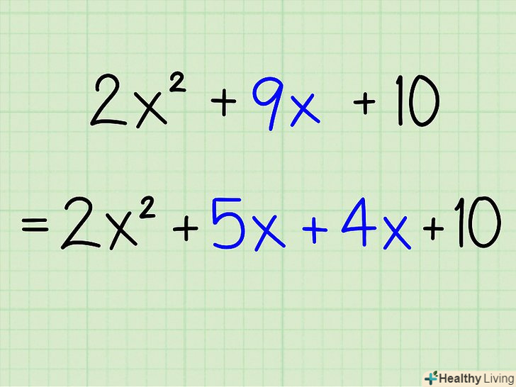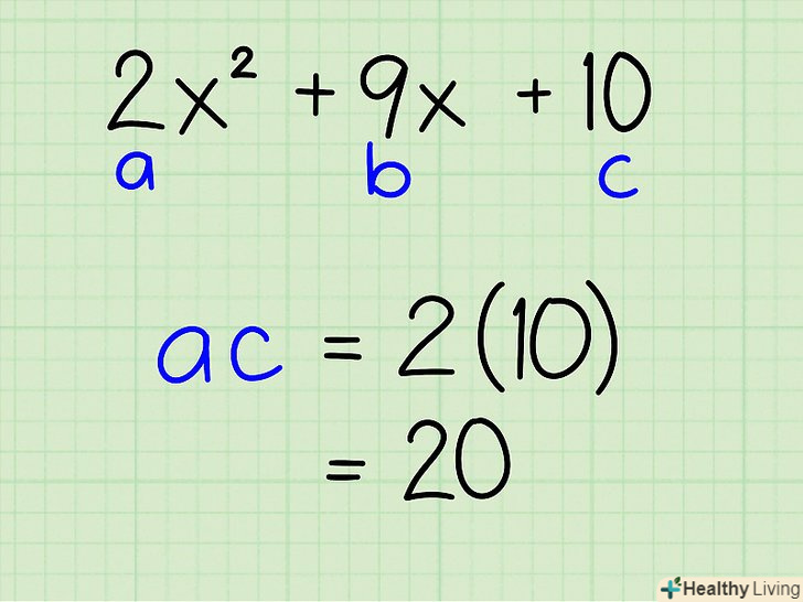 Перемножте коефіцієнти А і С.- Приклад: 2x2 + 9x + 10