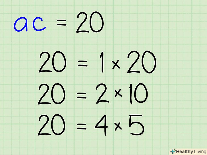 Для отриманого значення знайдіть всі можливі пари множників.- Приклад: множники числа 20: 1, 2, 4, 5, 10, 20.