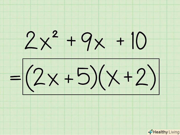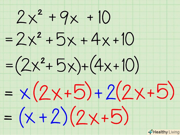 - Приклад: 2x2 + 9x + 10 = (2x + 5)(x + 2)