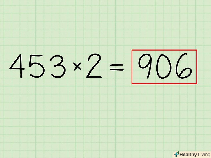 Повторіть для наступних цифр.виконайте ті ж дії для всіх залишилися цифр, рухаючись зліва направо, поки не подвоїте останню цифру (одиниці) вашого числа.- приклад: у прикладі залишився тільки один розряд (одна цифра).