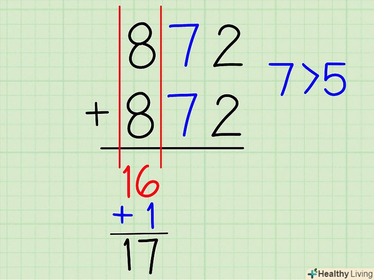 - приклад: друга цифра числа 872-це 7. Так як 7 Більше 5, до попереднього розряду треба додати 1.