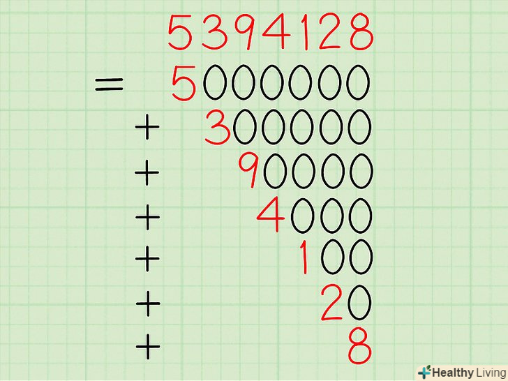 Попрактикуйтеся з невеликими числами, наприклад, з однозначним числом.- Ви можете застосовувати цей метод поряд з методом, описаним у попередньому розділі, для розкладання великих чисел. Але так як велике число можна розкласти на безліч різних доданків, то застосовувати тільки цей метод для розкладання великих чисел недоцільно.