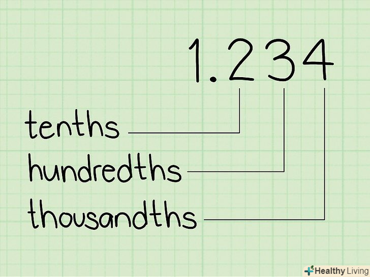 - Цифра, що йде третьою після десяткової коми, знаходиться в позиції тисячних.