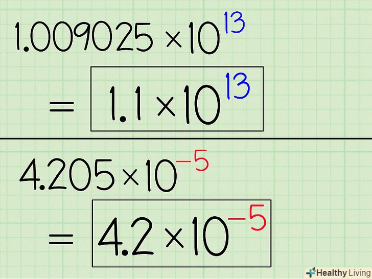 Округліть номер наскільки можливо.все залежить від того, наскільки точний від вас вимагається відповідь. Наприклад, 1,009025 х 1013 можна округлити до 1,009 х 1013 або навіть до 1,01 х 1013 в залежності від того, наскільки точним повинен бути відповідь.