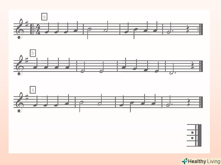 Визначитеся з тональністю.тональність композиції визначає ключ і мажорність або мінорність лада.[8] на ранніх стадіях створення композиції тональність можна вибрати в довільному порядку, але вона буде надавати величезний вплив на звучання всього твору. Якщо, закінчивши композицію, ви захочете поміняти її тональність, так і зробіть, але майте на увазі, що переводити твір в іншу тональність ноту за нотою — досить важка праця.