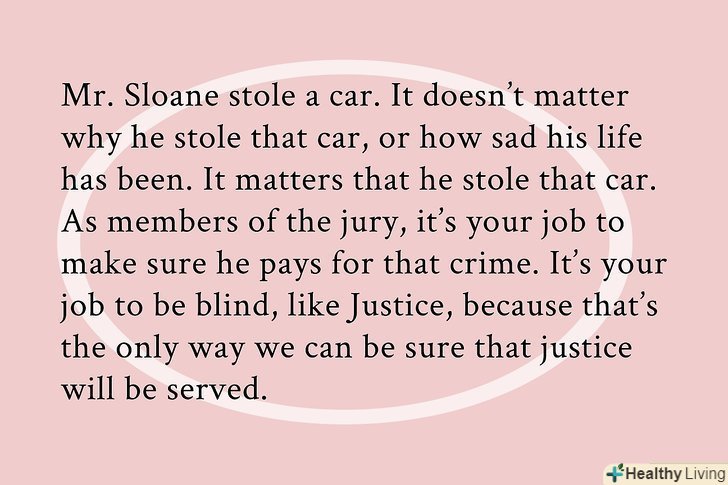 Постарайтеся звернутися до почуттів присяжних. журі присяжних складається з реальних людей, і у кожного з них є своя звичайна життя. Напишіть вступну заяву, яка прозвучить як цікава історія. Якщо в судовій справі є обставини, які присяжні можуть співвіднести зі своїм власним життям, вони запам'ятають ці обставини, коли про них розповість адвокат. переконлива вступна Заява дасть вам можливість розповісти історію і домогтися того, що присяжні будуть особисто зацікавлені в обставинах справи. Постарайтеся звернутися до почуттів присяжних. журі присяжних складається з реальних людей, і у кожного з них є своя звичайна життя. Напишіть вступну заяву, яка прозвучить як цікава історія. Якщо в судовій справі є обставини, які присяжні можуть співвіднести зі своїм власним життям, вони запам'ятають ці обставини, коли про них розповість адвокат. переконлива вступна Заява дасть вам можливість розповісти історію і домогтися того, що присяжні будуть особисто зацікавлені в обставинах справи.
