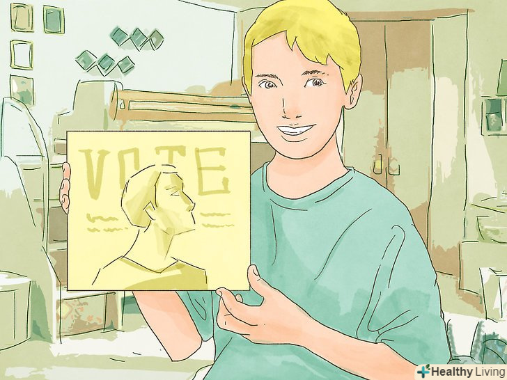 Придумайте кілька помітних передвиборних гасел.якщо ви напишете на плакаті» Голосуйте за Маріо " і повісите його над питним фонтаном, то це не принесе ніяких результатів. Придумайте розумний слоган, який виділить вас серед інших кандидатів. Перегляньте Інтернет, щоб знайти дійсно веселі гасла, вставте своє ім'я, щоб побити відомий девіз (може, Малькольма?) або попросіть друзів допомогти розробити щось за шаблоном. Основні проблеми повинні бути зачеплені і в гаслі, і на плакаті ,і в листівках (наприклад: «алмази вічні. Питний фонтан теж нікуди не дінеться"). Придумайте кілька помітних передвиборних гасел.якщо ви напишете на плакаті» Голосуйте за Маріо " і повісите його над питним фонтаном, то це не принесе ніяких результатів. Придумайте розумний слоган, який виділить вас серед інших кандидатів. Перегляньте Інтернет, щоб знайти дійсно веселі гасла, вставте своє ім'я, щоб побити відомий девіз (може, Малькольма?) або попросіть друзів допомогти розробити щось за шаблоном. Основні проблеми повинні бути зачеплені і в гаслі, і на плакаті ,і в листівках (наприклад: «алмази вічні. Питний фонтан теж нікуди не дінеться").