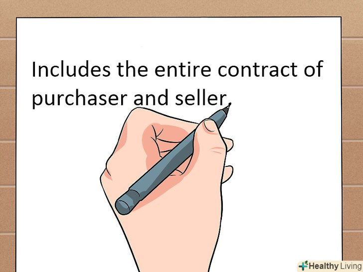 Включіть статтю про повноту і остаточний характер договору.вкажіть, що договір " включає весь договір продавця і покупця». Також вкажіть, що будь-які зміни до договору повинні оформлені належним чином підписаним сторонами доповненням до договору. [23] Включіть статтю про повноту і остаточний характер договору.вкажіть, що договір " включає весь договір продавця і покупця». Також вкажіть, що будь-які зміни до договору повинні оформлені належним чином підписаним сторонами доповненням до договору. [23]- Це положення позбавить сторони від можливих подальших вимог будь-якої зі сторін, не прописаних в договорі.[24]