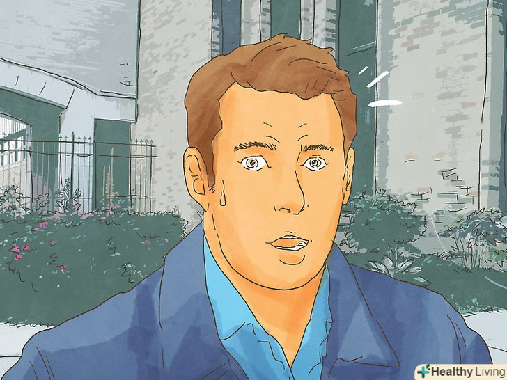 Помічайте ознаки страху.у момент страху на обличчі проступають підняті, рівні лінії по центру чола над бровами, які зазвичай зведені разом. У людини, яка відчуває страх, піднімаються верхні повіки, а нижні напружені і спрямовані вгору. Ви помітите верхню, але не нижню частину білка, а рот буде трохи відкритий і напружений.- Реагувати слід по ситуації, але в більшості випадків рекомендується змінити тему або підхід. Страх сковує, тому вам буде складно отримати необхідну інформацію.