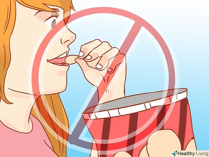 Намагайтеся не їсти під час навчання.сидячи за уроками, легко втомитися і зголодніти, але слід бути обережним. Ви можете захопитися і постійно щось жувати, навіть не звертаючи на це уваги. Найгірше, якщо це буде шкідлива їжа, на зразок чіпсів або солодощів. Якщо вам не обійтися без перекусу, нехай це будуть свіжі фрукти, овочі або цільнозернові крекери.[21]- Уникайте вживати під час навчання занадто багато цукру і кофеїну. Вони можуть підвищити нервову збудливість, і в результаті ви погано себе відчуєте.