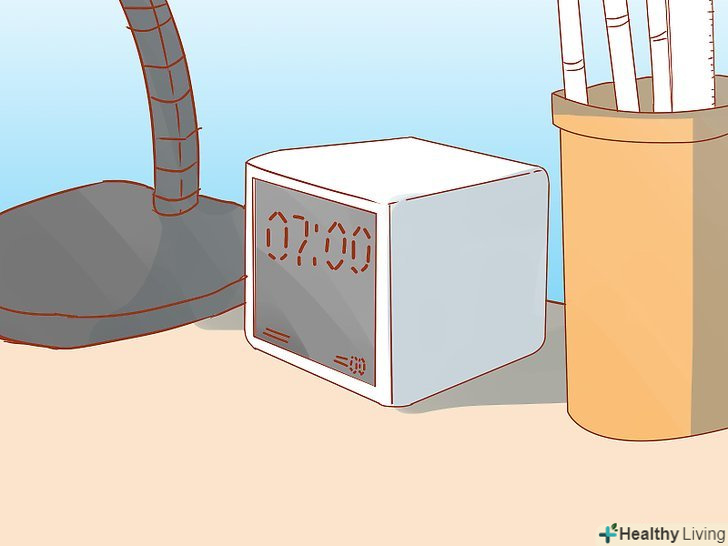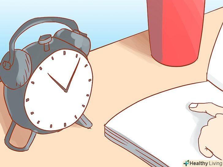 Вирішіть, чи потрібні вам годинник.все залежить від того, що ви за людина: чи будуть вони мотивувати вас позайматися ще годину або тільки нагадувати, що улюблений серіал почнеться всього через 15 хвилин (або змушувати вас думати: «скільки я вже тут сиджу? Невже так мало?!»).[9]- Спробуйте використовувати годинник, щоб встановлювати цілі, пов'язані з часом. Можете просто помічати час по годинах або задіяти функцію таймера на телефоні. Прийміть рішення займатися певний час-скажімо, 30 хвилин. Протягом цього відрізка не дозволяйте собі ні на що відволікатися. Коли він закінчиться, влаштуйте невелику перерву, щоб винагородити себе за працю.[10]