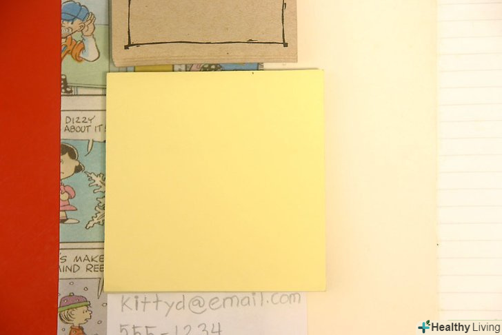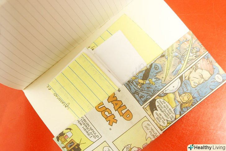 Приклейте невелику стрічку або нитку, щоб використовувати її в якості закладки.для пружинних блокнотів її можна прив'язати до спіралі. Є ще кілька способів полегшити пошук інформації. Наприклад, можна приклеїти паперові куточки або кольорові картонні скріпки, щоб відзначати важливі сторінки. Якщо сторінки використовуються поспіль, можна відрізати куточок кожного заповненого аркуша, щоб швидко знайти поточну позицію.