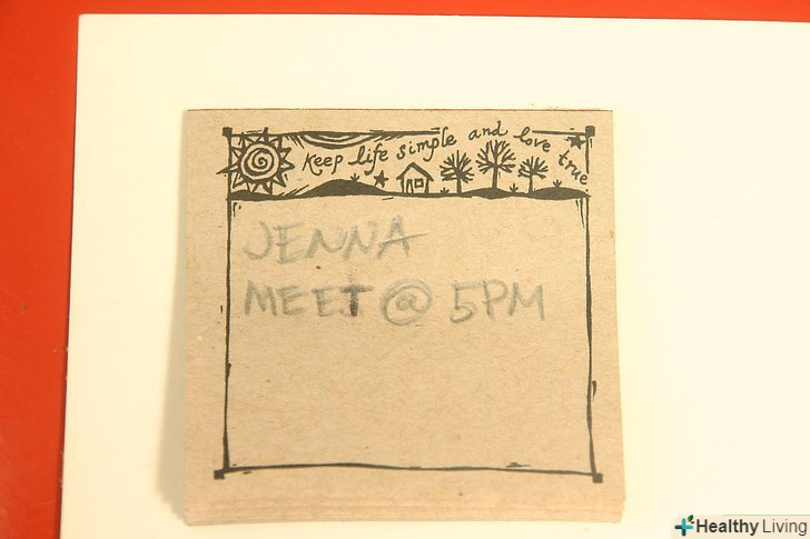 Додайте кишеньку.він може бути у формі зрізаного куточка або повної кишені. Розмір може бути будь-яким, в залежності від того, що ви плануєте зберігати там – візитки, Папір для заміток, отримані записки або смужки для відправки таких записок, і т.д. кишеньку можна вирізати зі звичайного паперу або прозорого файлу. Щоб закріпити його, використовуйте клейовий олівець або скотч.