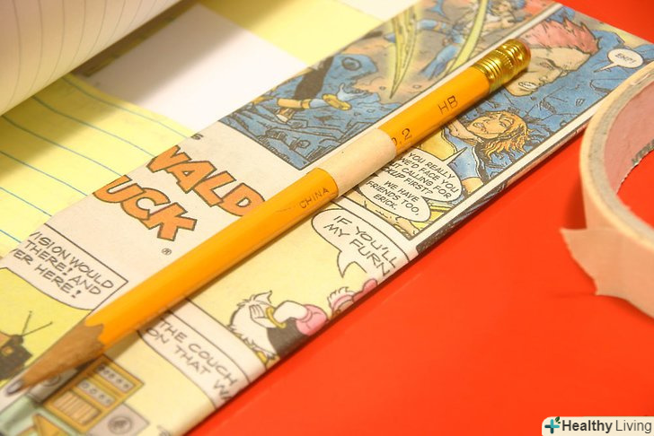 Додайте петельку під ручку.згорніть смужку паперу в трубочку навколо своєї улюбленої ручки і склейте її, а потім закріпіть на задній частині обкладинки. В якості альтернативи для фіксації ручки можна використовувати гумку. Її можна приклеїти до обкладинки, прив'язати до пружинки або навіть корінця, пробивши в ньому отвір.
