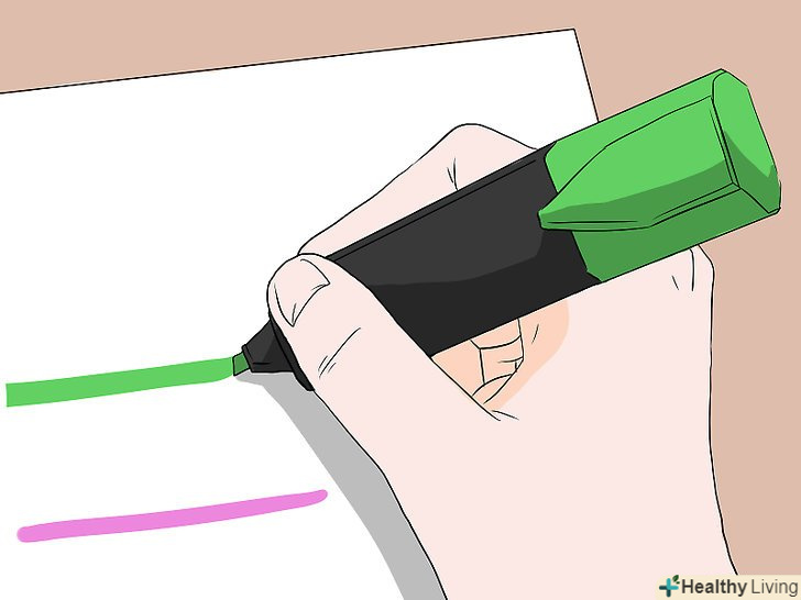 - Використовуйте маркер для виділення, щоб виділити важливу інформацію. Використовуйте один колір для основних понять, інший - для словника, третій – для дат і т.д. потім, коли ви почнете працювати над конспектом, інформація буде сприйматися набагато краще.