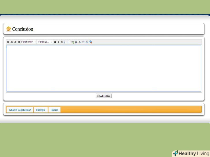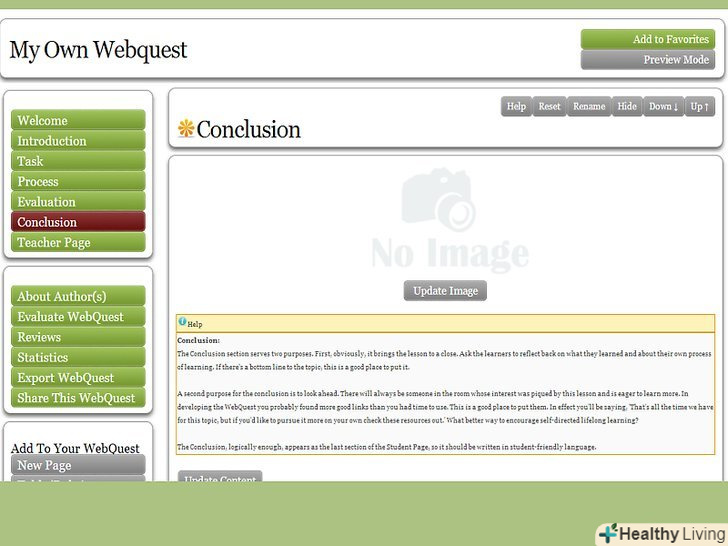 Зробіть заключну сторінку.ця сторінка завершує весь вебквест, повторює основні моменти, які ваші студенти повинні були засвоїти в ході цього завдання, і надихає їх на подальше вивчення питання. Можливо, ви захочете вказати тут додаткові джерела, щоб ті, хто зацікавився даною темою або просто впорався із завданням раніше за інших, змогли продовжити її вивчення.