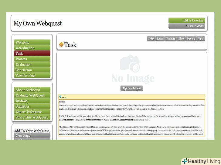 Зробіть сторінку із завданням.на сторінці із завданням має бути чітко прописано, що учні повинні засвоїти до кінця роботи із завданням. Весь час пам'ятайте: мета цього завдання, цього навчального подорожі – це ті знання, які учні придбають в кінці. Використовуйте цю навчальну мету для створення історії вебквесту, в який ви збираєтеся відправити своїх учнів.- Офіційний сайт для створення навчальних вебквестов дає список типів завдань, службовців різним освітнім цілям. Ось деякі з них: журналістський, загадковий, аналітичний, комбінований.[3]